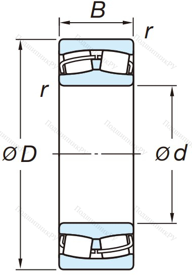 Сферический роликовый подшипник 22319 RZW33, представляет разновидность сферических роликоподшипников. В зависимости от типа может иметь один или два ряда тел качения в форме бочкообразных роликов. Однорядный имеет следующее конструктивное исполнение: массивная внешняя обойма, внутреннее кольцо, сепаратор, ролики. В зависимости от типа может иметь обоймы без бортов или с бортами. Является неразъёмным.