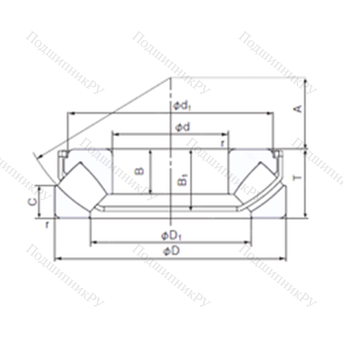 - Обладает более широкой зоной передачи усилий в сравнении с шарикоподшипниковыми аналогами, однако предназначен исключительно для работы с малыми скоростями вращения.