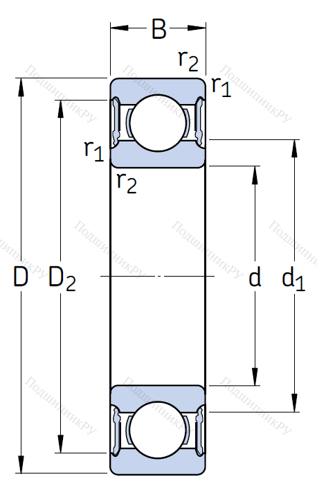 Однорядный шариковый подшипник 61807 2RS 1