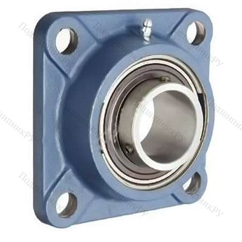 Фланцевого корпуса типа F (по классификации FKL), квадратного сечения с 4 отверстиями под болты. Устанавливается на вертикальные опорные поверхности. Иными брендами маркируется иначе. Пример: SKF – FY(J), FAG – FG56, INA – CF/CJ, NSK и NTN – F.